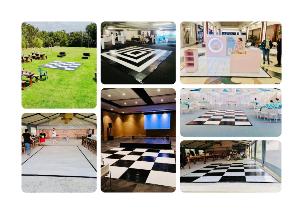Custom-fitted flooring to ensure stability and style inside marquees and tents.